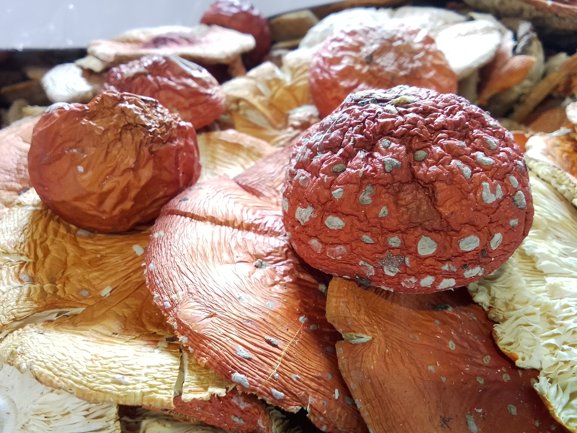 Можно ли есть мухоморы? Да, можно, но только после просушки, выдержки хотя бы 2-3 недели, и естественно нужно соблюдать дозировки. При дозировках более 5 гр Красного Мухомора, вызывает опьянение, а более 15 гр может вызывать трип, галлюцинации. Пантерный Мухомор в 5-6 раз мощнее Красного, 3 гр вызывают опьянение и предтриповое состояние. Рекомендуем принимать Мухомор только для микродозинга!